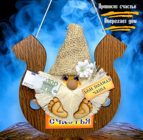 Подкова на дверь с домовым "Удача" или "Счатья"